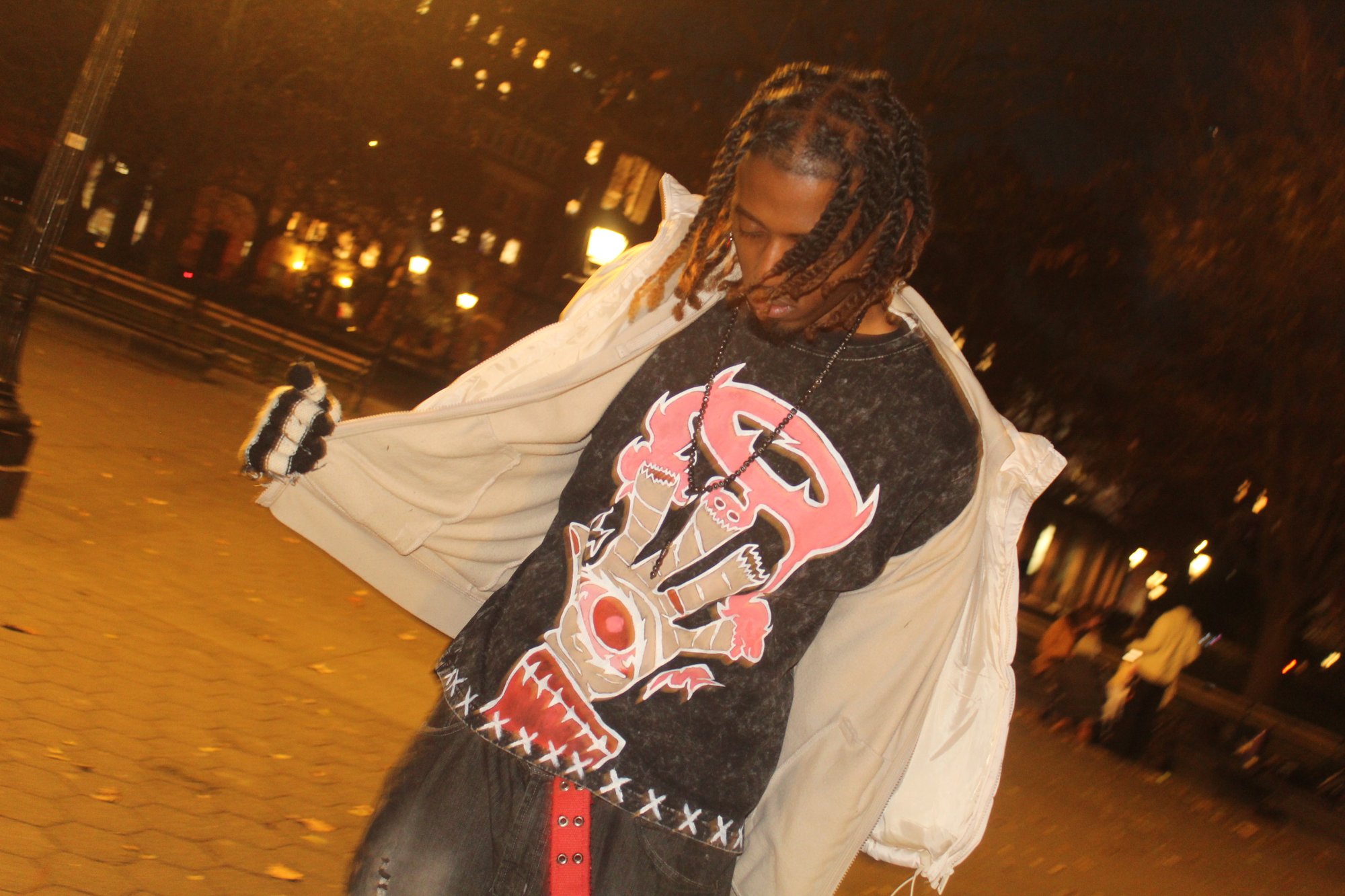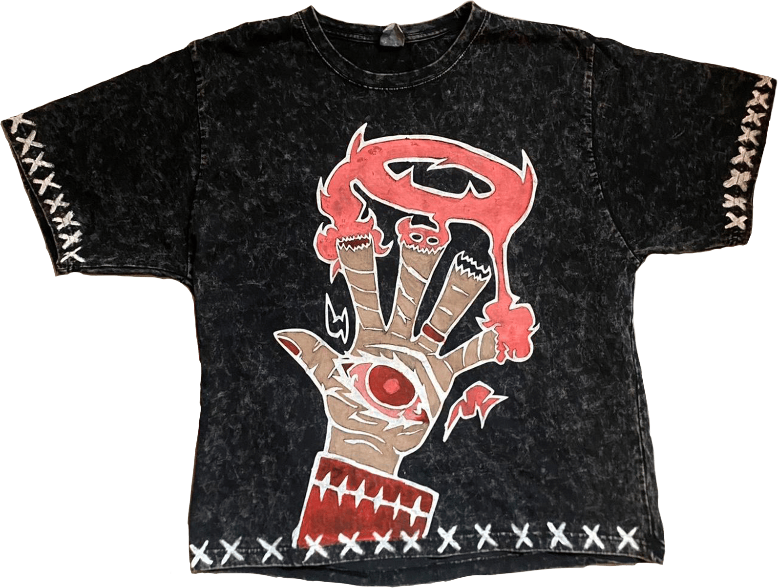 The "Faded Halo" tee features a two sided screen print and hand painted design. Printed on a heavy weighted T- Shirt.